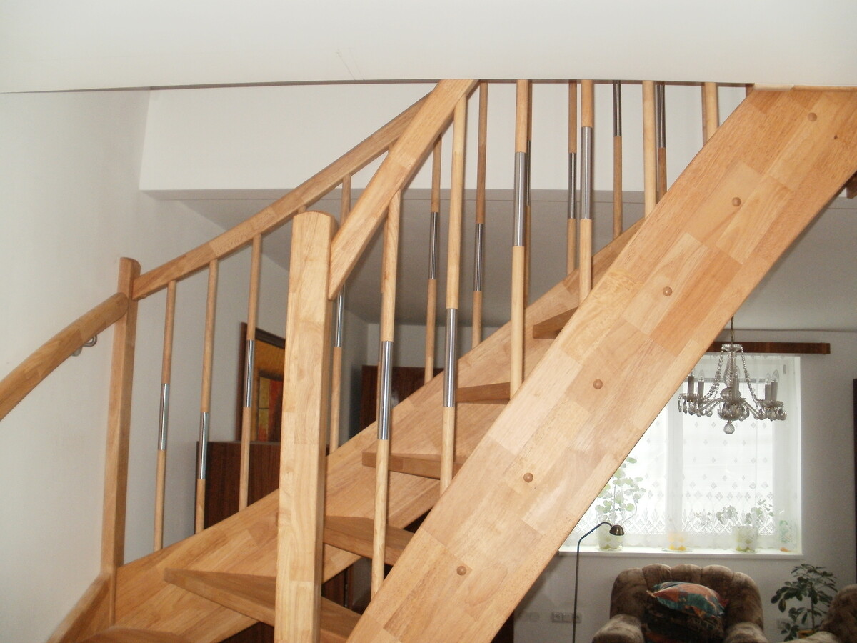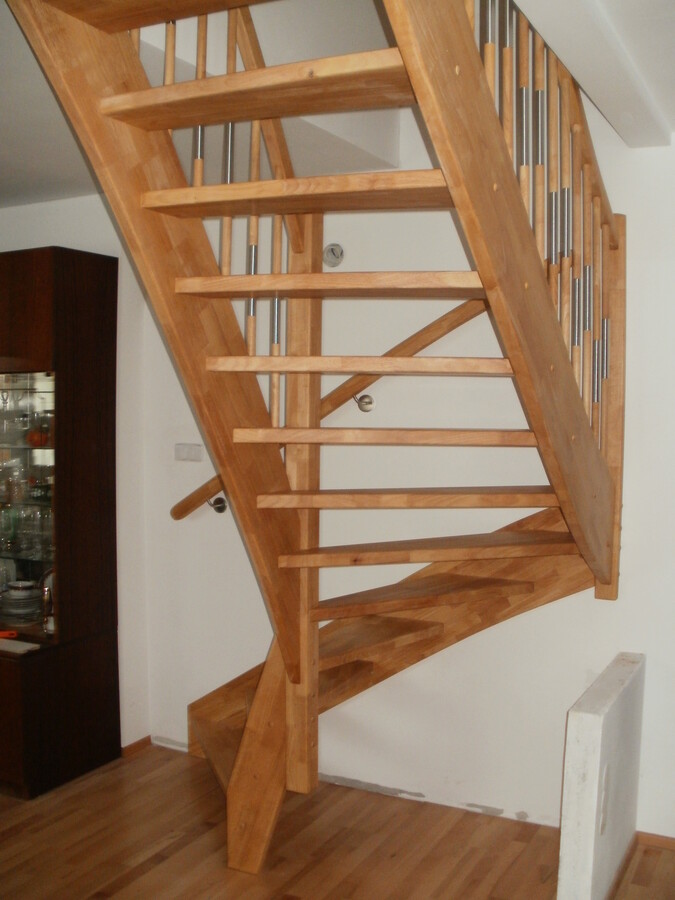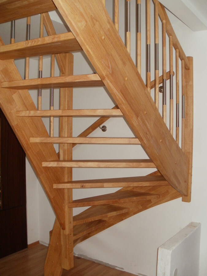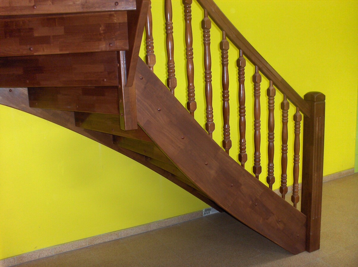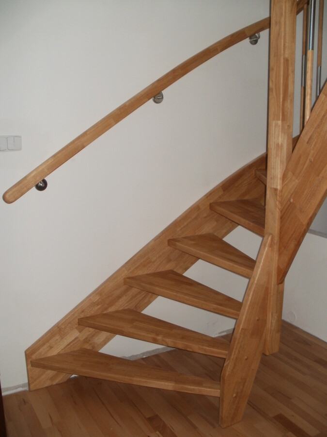 Jedenkrát lomené dřevěné schodiště - mořená Hevea