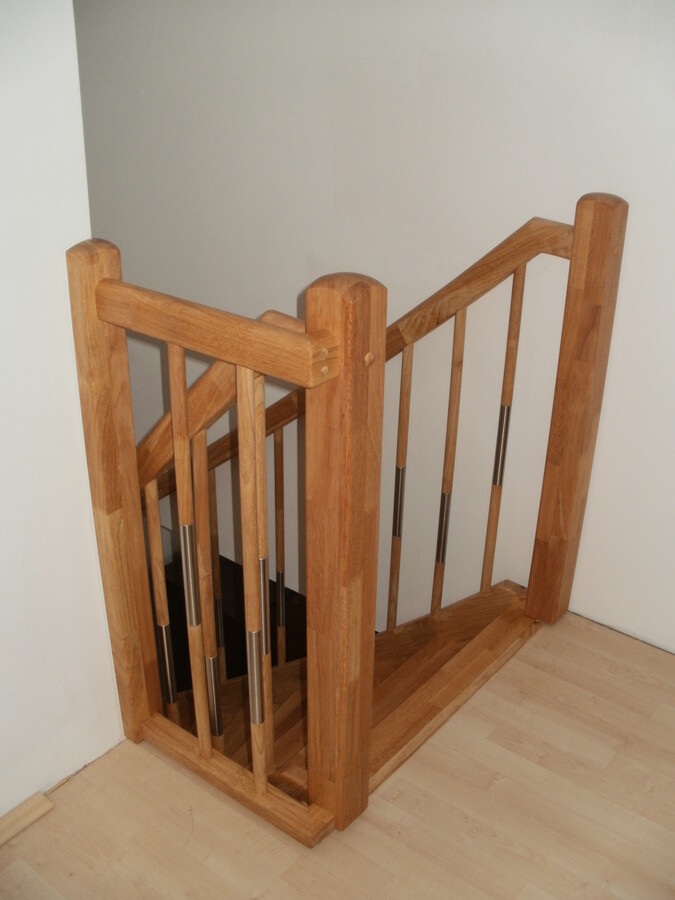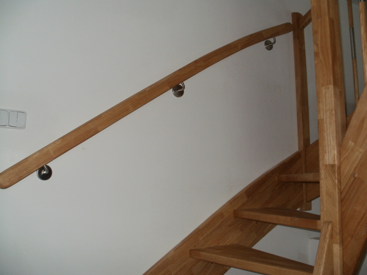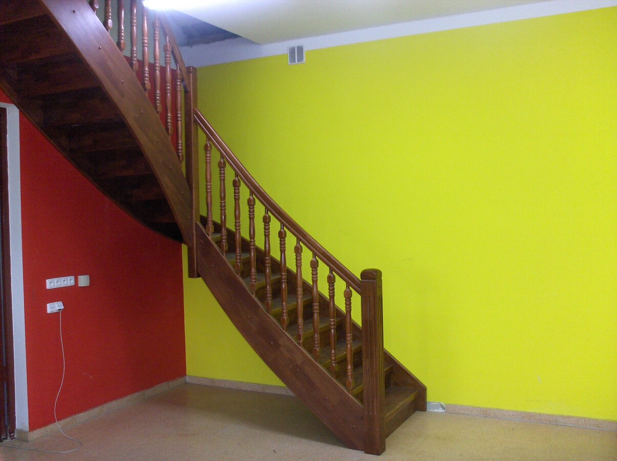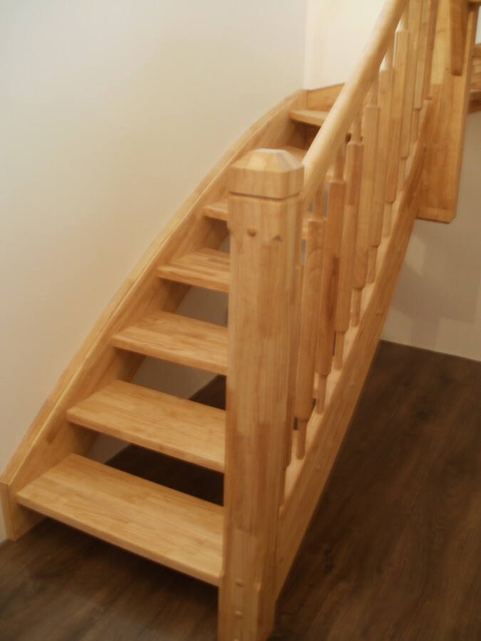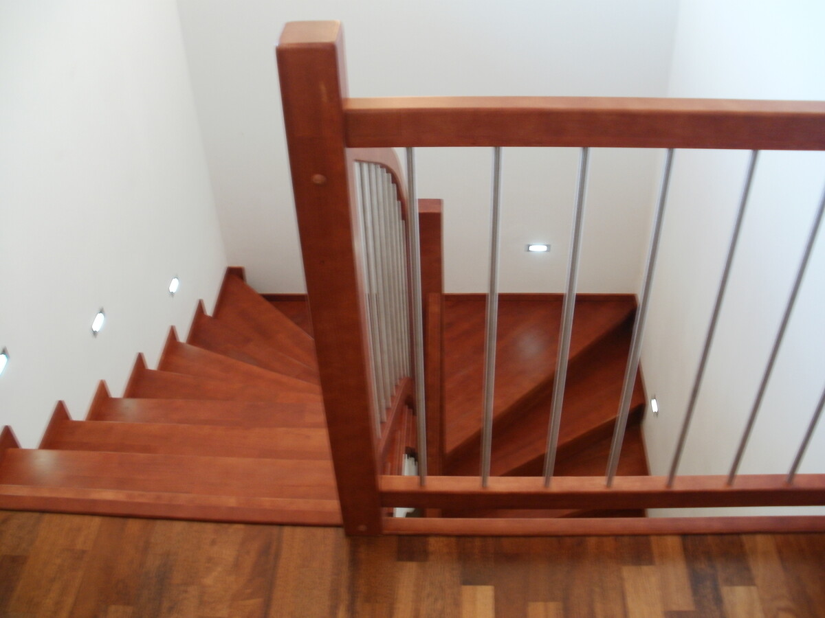 Jedenkrát lomené dřevěné schodiště - mořená Hevea