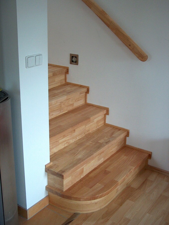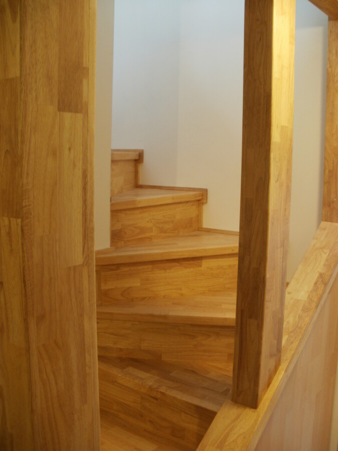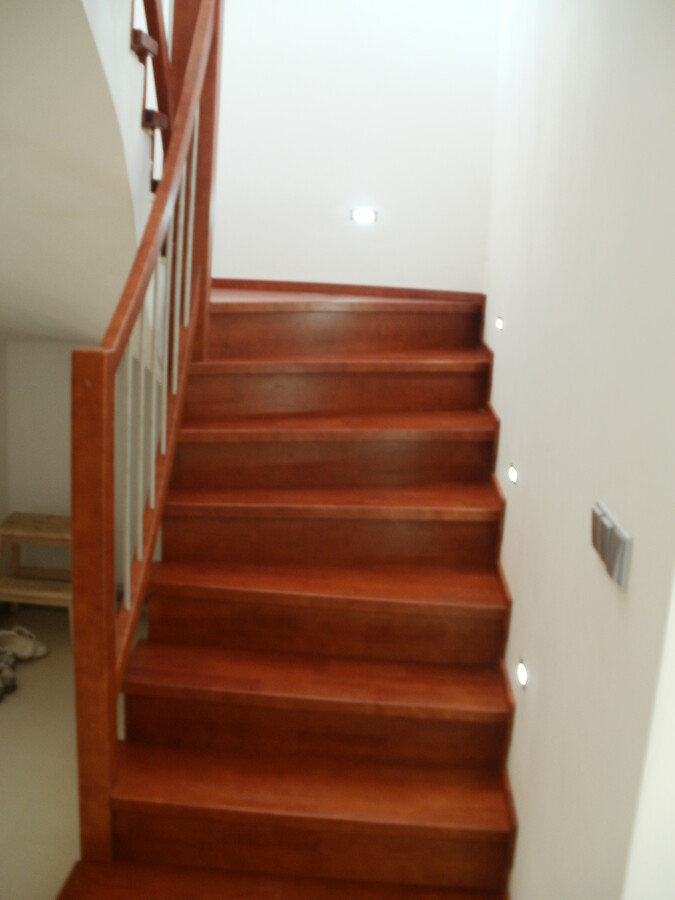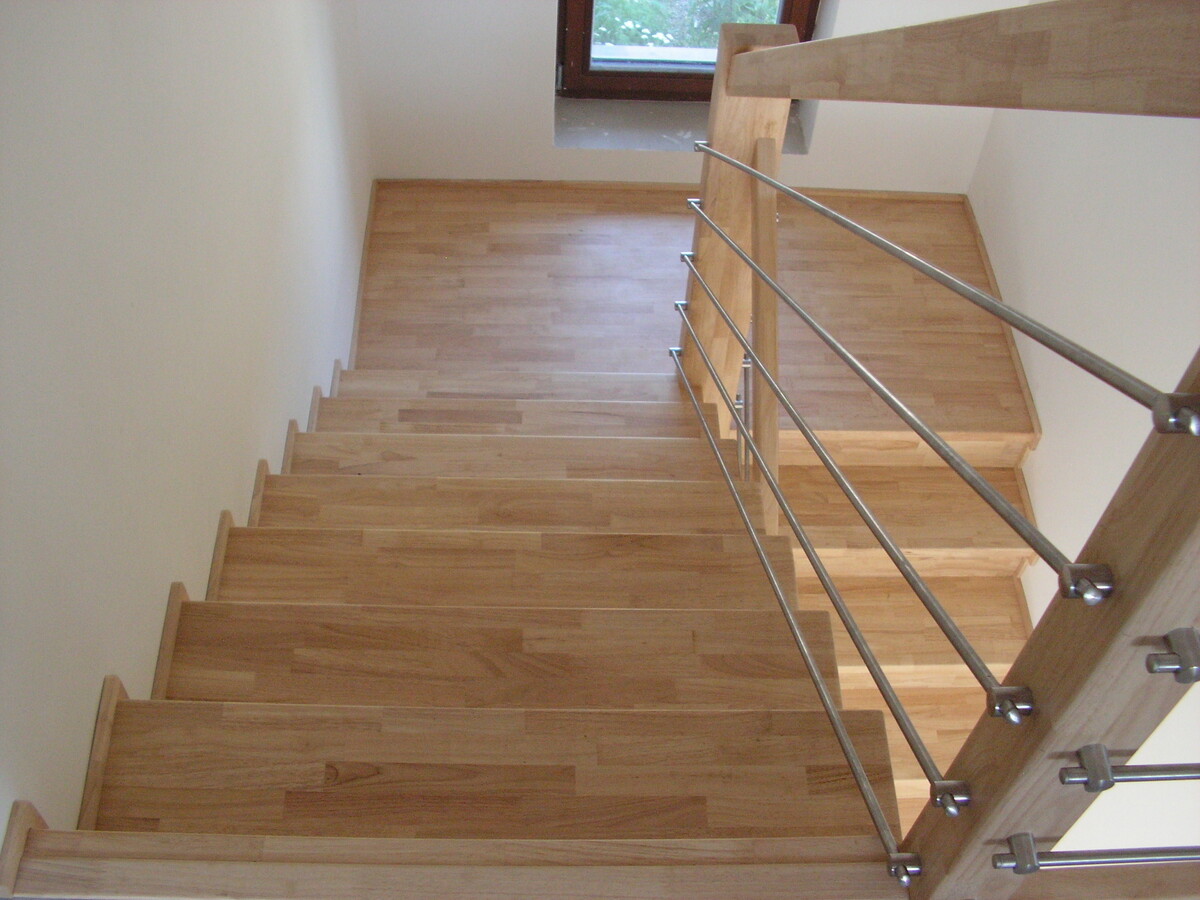 Interiérové schodiště ze dřeva hevea brasiliensis