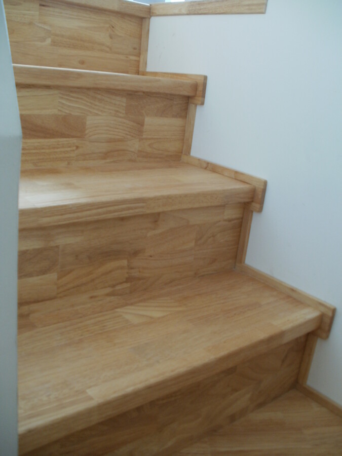 Mnoho možností vyplývajících z vlastností materiálu dává prostor k designové úpravě povrchu, která dotvoří tento prvek k dokonalému sladění s okolním interiérem. Dokonce i stávající betonové schodiště je možné upravit spárovými obklady z hevea brasiliensis, které mu dodají přírodní vzhled buď čistého jednolitého dřeva, nebo přirozeněji vypadajícího dřeva se suky.